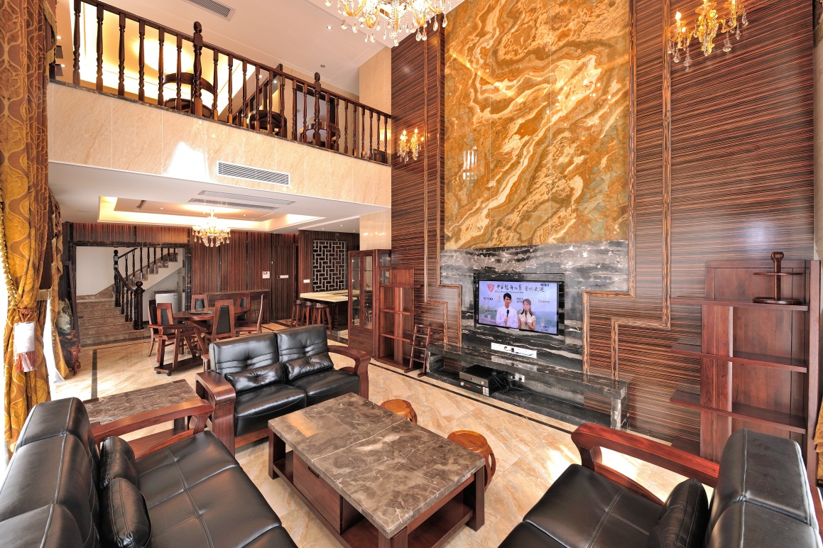 黑鏡鋼、黑金花大理石、烤漆飾面、墻紙、全拋釉地磚、布藝硬包