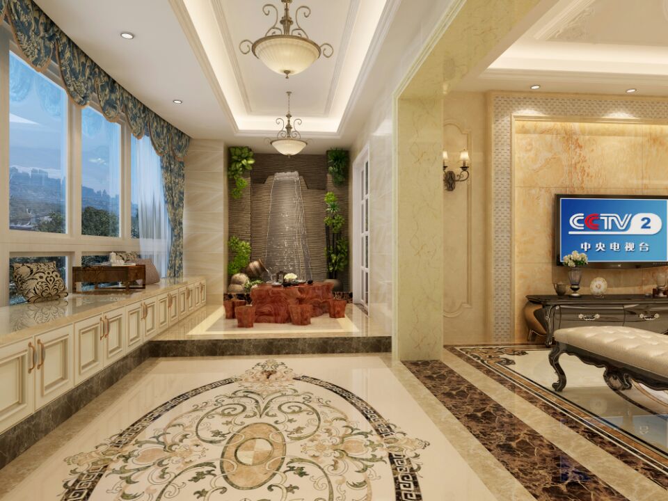 大理石,簡(jiǎn)一大理石瓷磚,水刀平花,實(shí)木木工板,石膏板吊頂,多樂士乳膠漆。